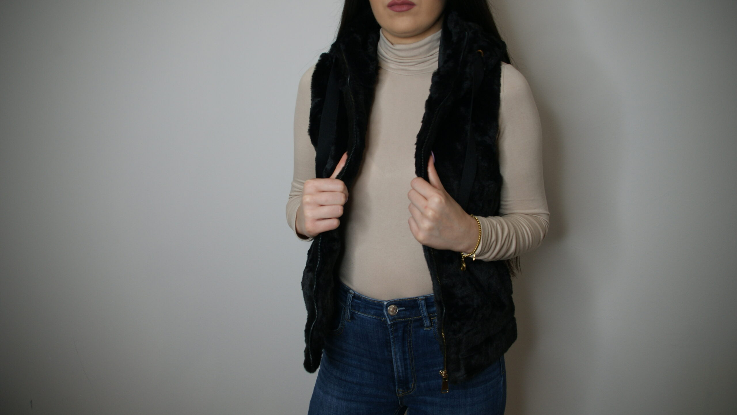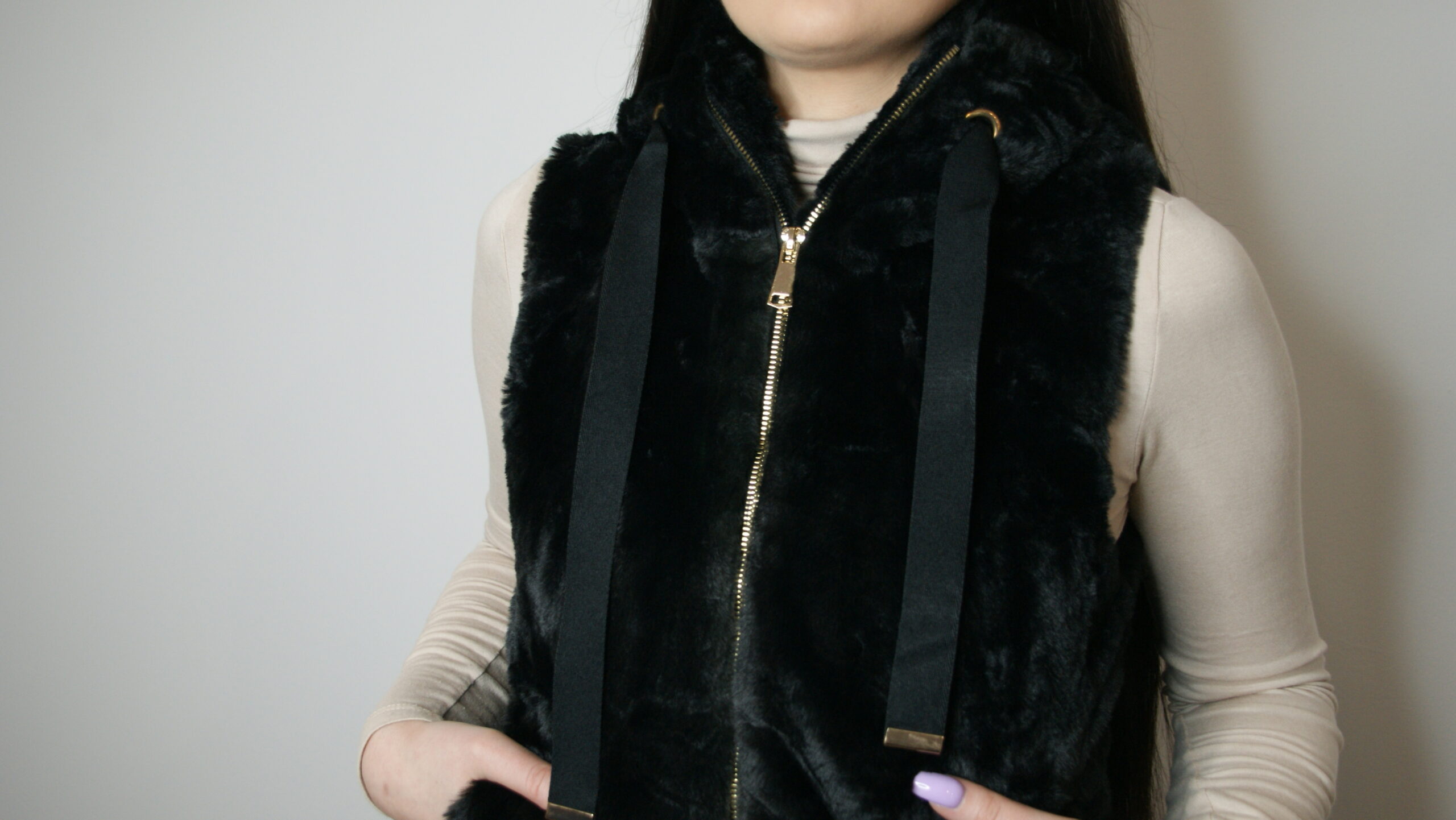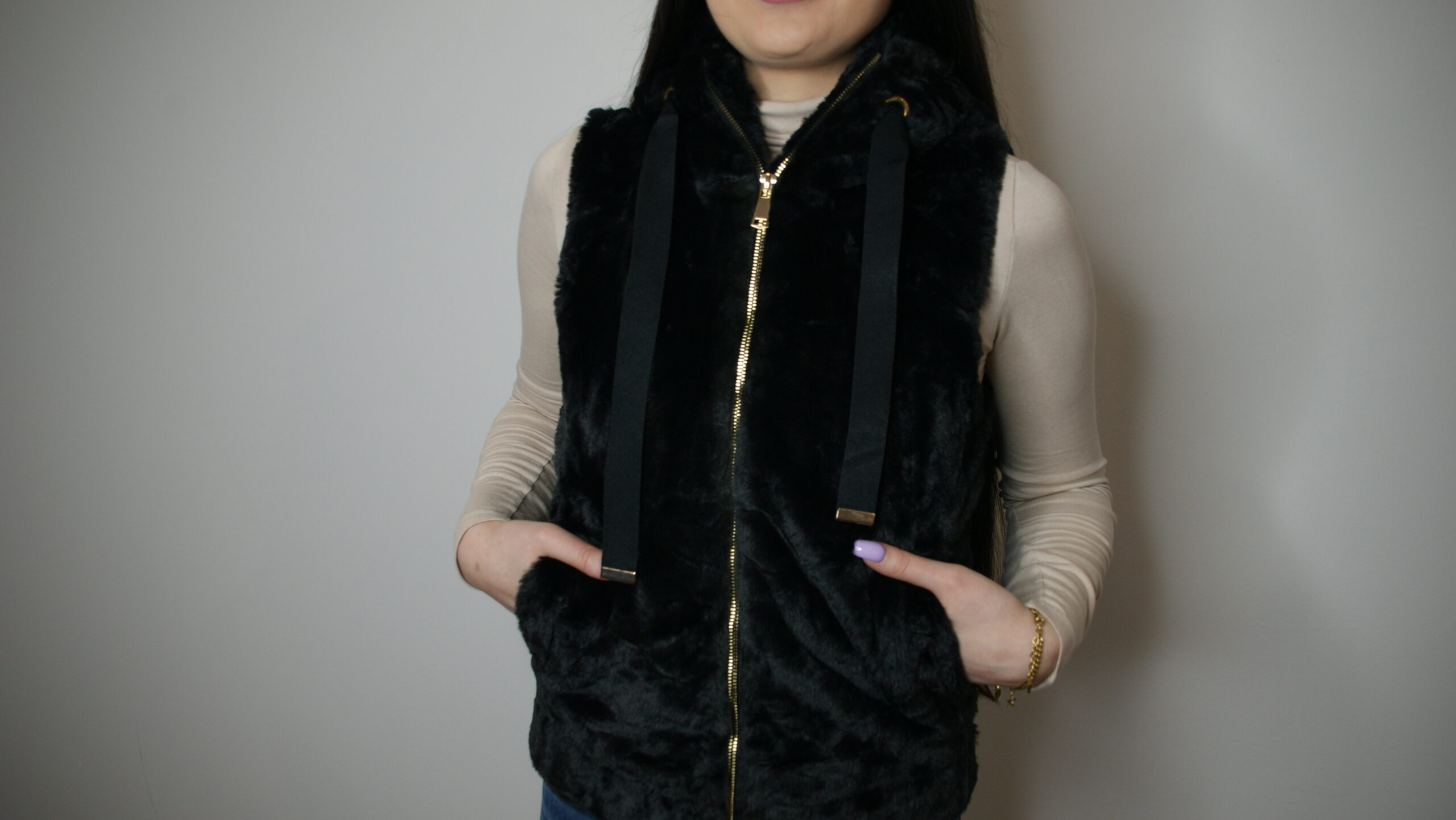 Kamizelki mają dodatki w odcieniu złota. Futerko jest bardzo miłe i ciepłe, przy czym nie „leni się” i nie zostawia włosków. Z przodu są dwie duże kieszonki. Idealne na wiosnę lub chłodniejsze, letnie dni.
