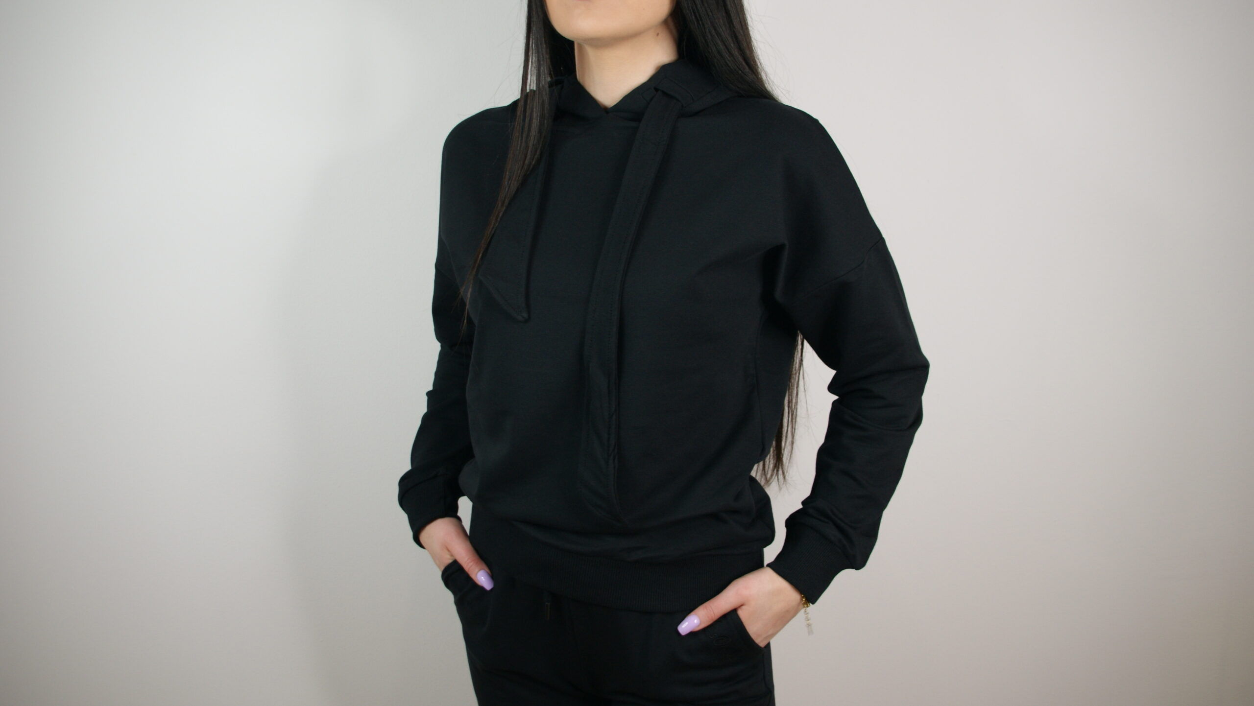 Komplet jest wykonany z dobrej jakości materiału. Bluza na rękawie oraz jednym z pasków od kaptura ma naszywany wzór z napisem ‘’Good Vibes Only”. Spodnie są luźniejsze z ściągaczami na końcu nogawek, z kieszeniami. Przy lewej kieszeni jest naszywany, wypukły napis, odpowiadający bluzie. Aplikacja jest wykonana trwale i nie ulegnie „spraniu”. Dres idealnie nadaje się na wiosenne lub jesienne dni. Nasza propozycja to połączenie dresu z pikowaną, czarną kamizelką lub do kurtki skórzanej. Komplety w tym stylu to hit sezonu wiosna 2023.