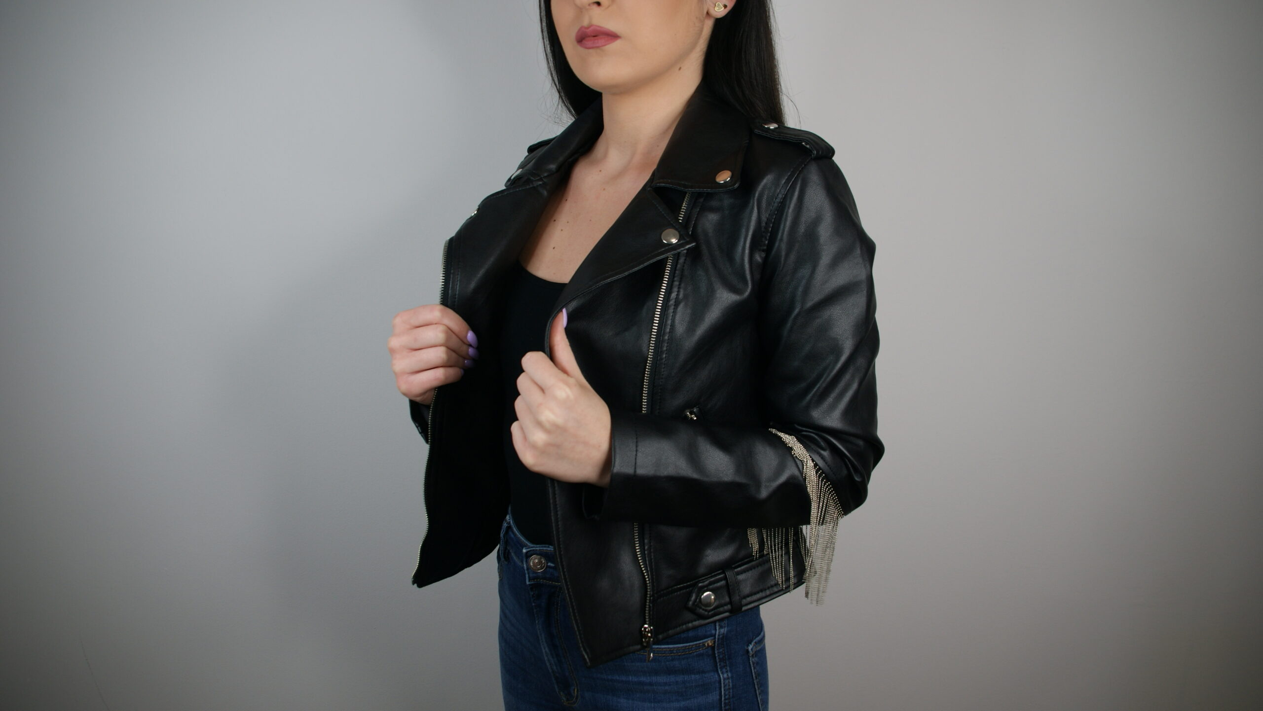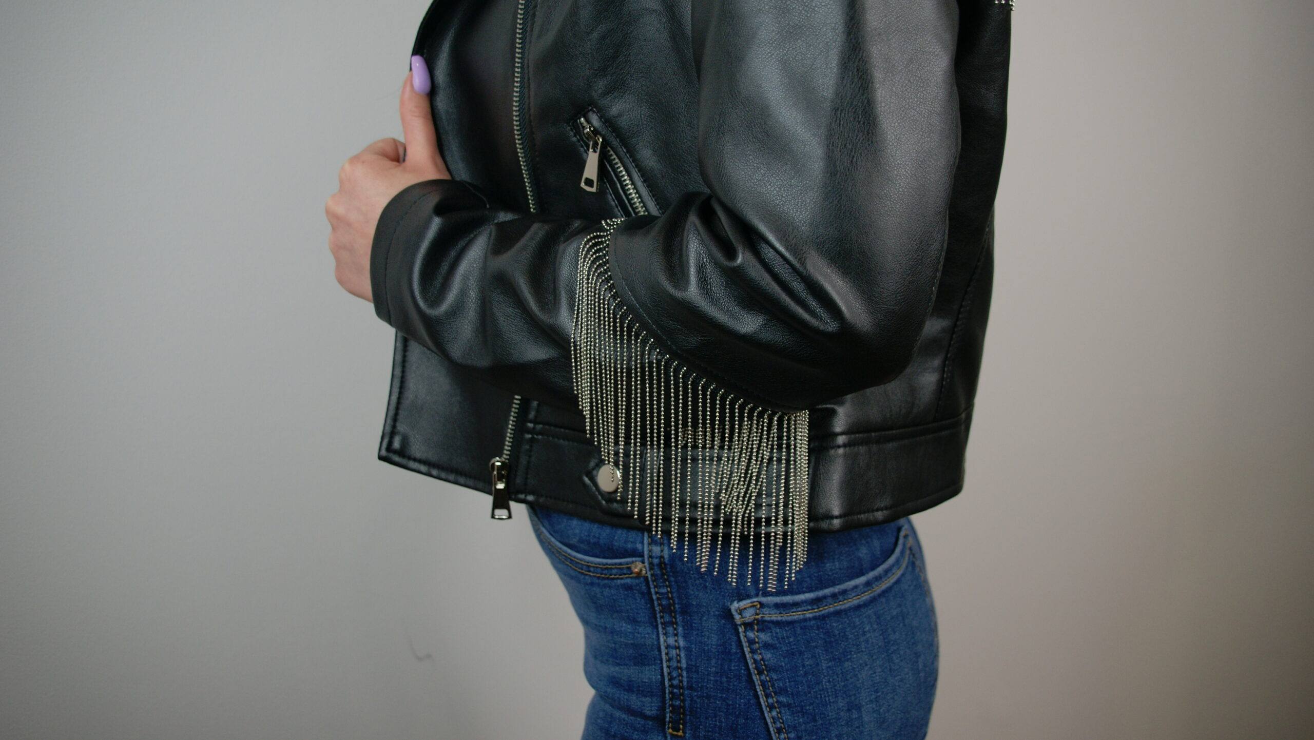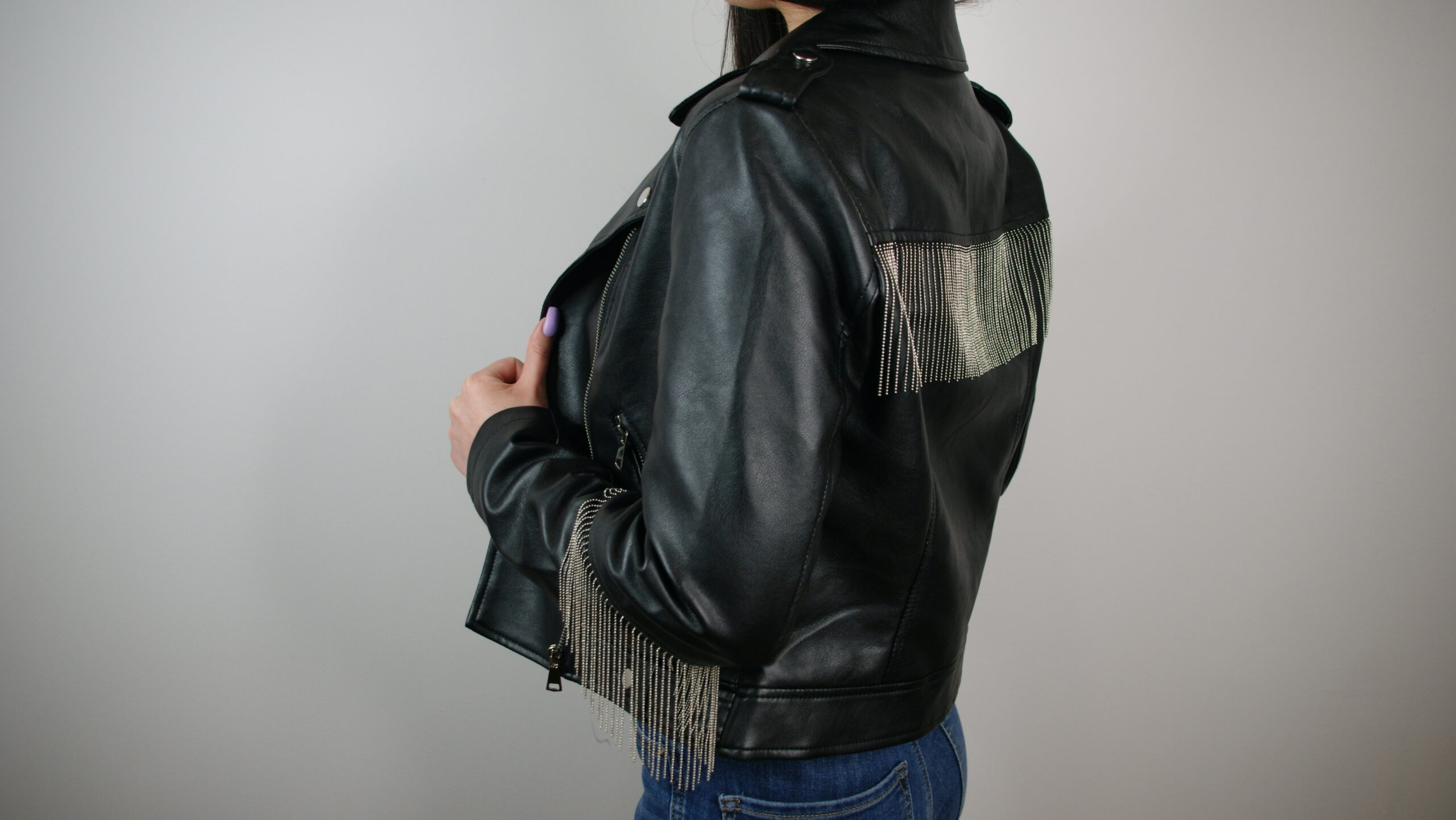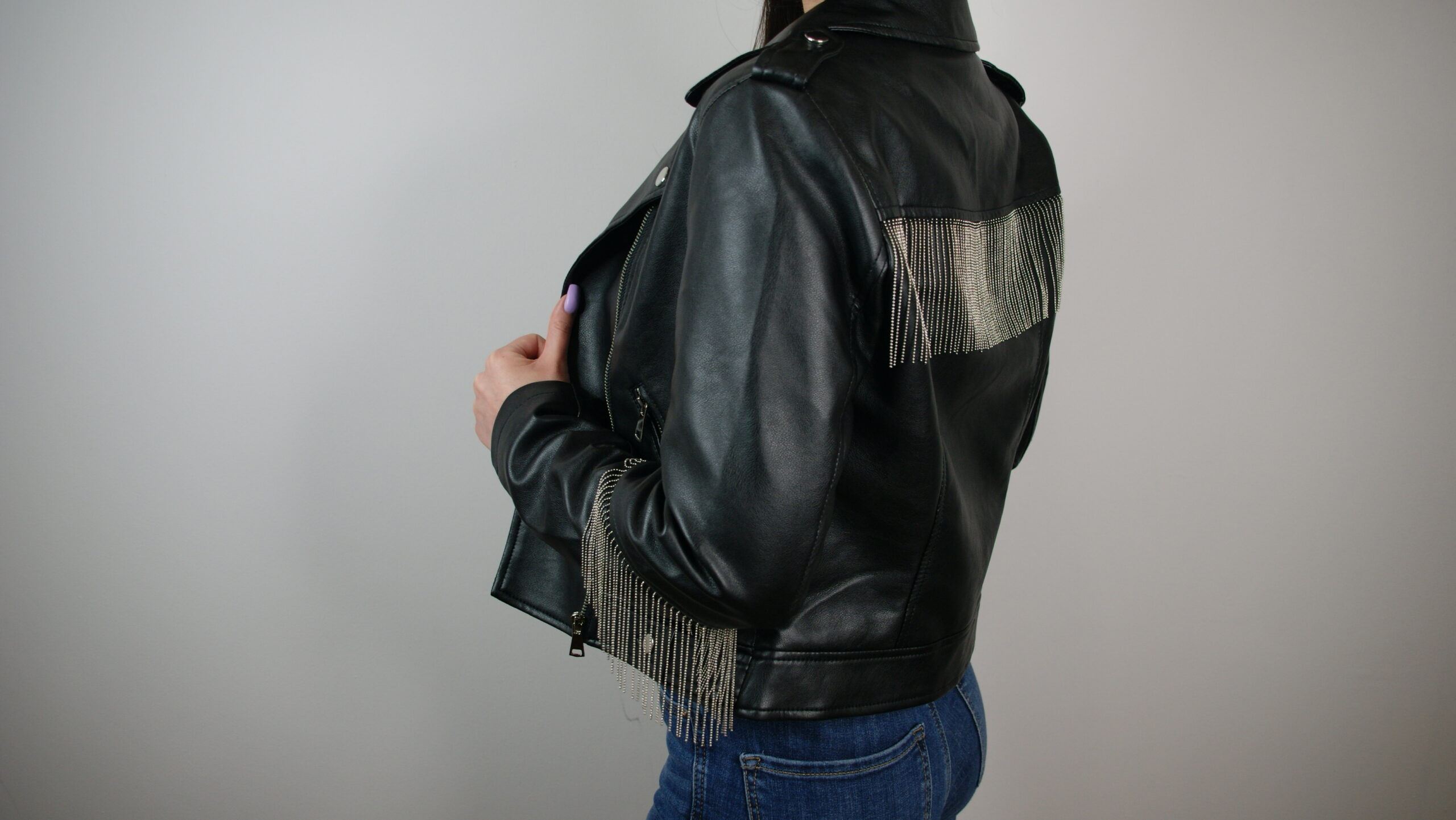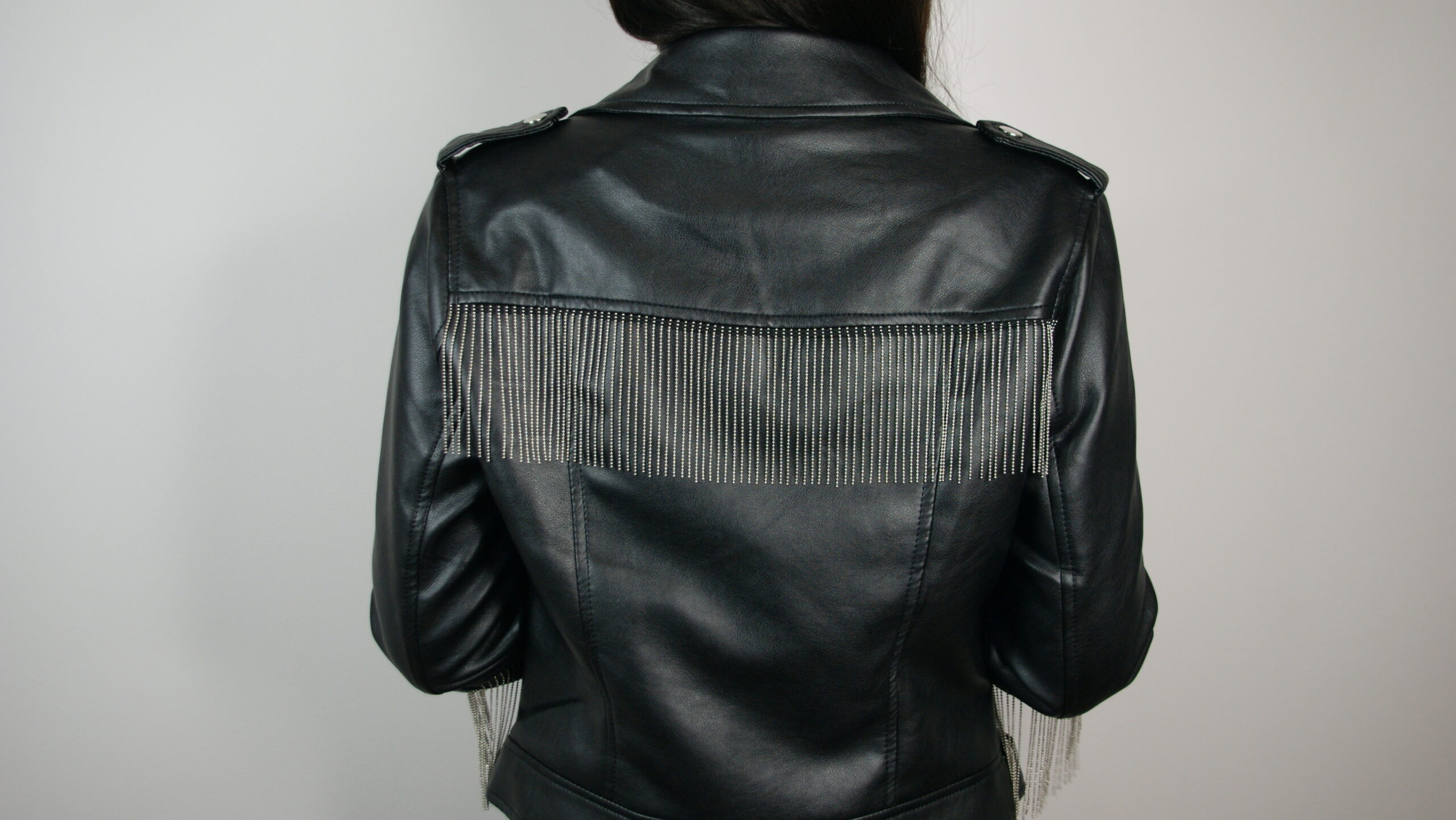 Kurteczki są wykonane z skóry syntetycznej. Na rękawach i na plecach są doszyte ozdobne łańcuszki w kolorze srebrnym. Sprawdzą się na co dzień, jak i w eleganckich stylizacjach. Są bardzo wygodna i komfortowe w noszeniu.