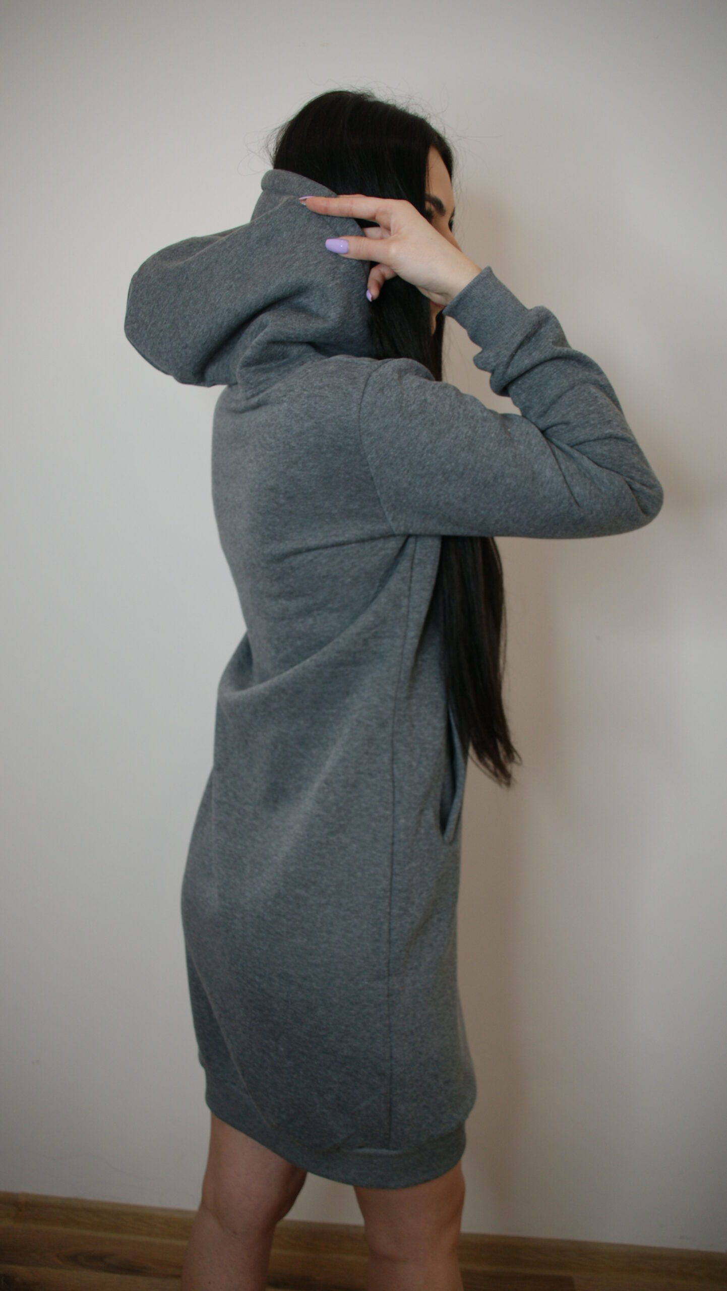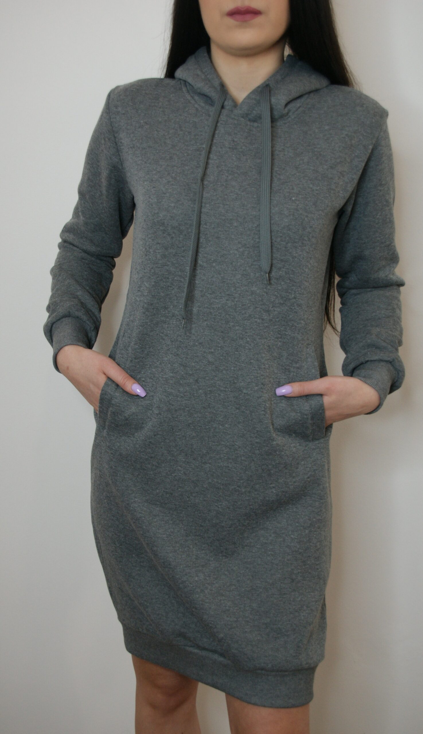 Sukienka jest lekko ocieplona, o kroju bluzy. Bardzo wygodna i komfortowa. Idealnie sprawdzi się na wiosnę, ale także na chłodniejsze letnie dni. Z przodu sukienka ma dwie kieszonki , a u spodu i przy rękawkach ściągacze. Sprawdzi się super na dni, kiedy chcemy ubrać coś szybko i wyglądać dobrze mimo gorszego samopoczucia.