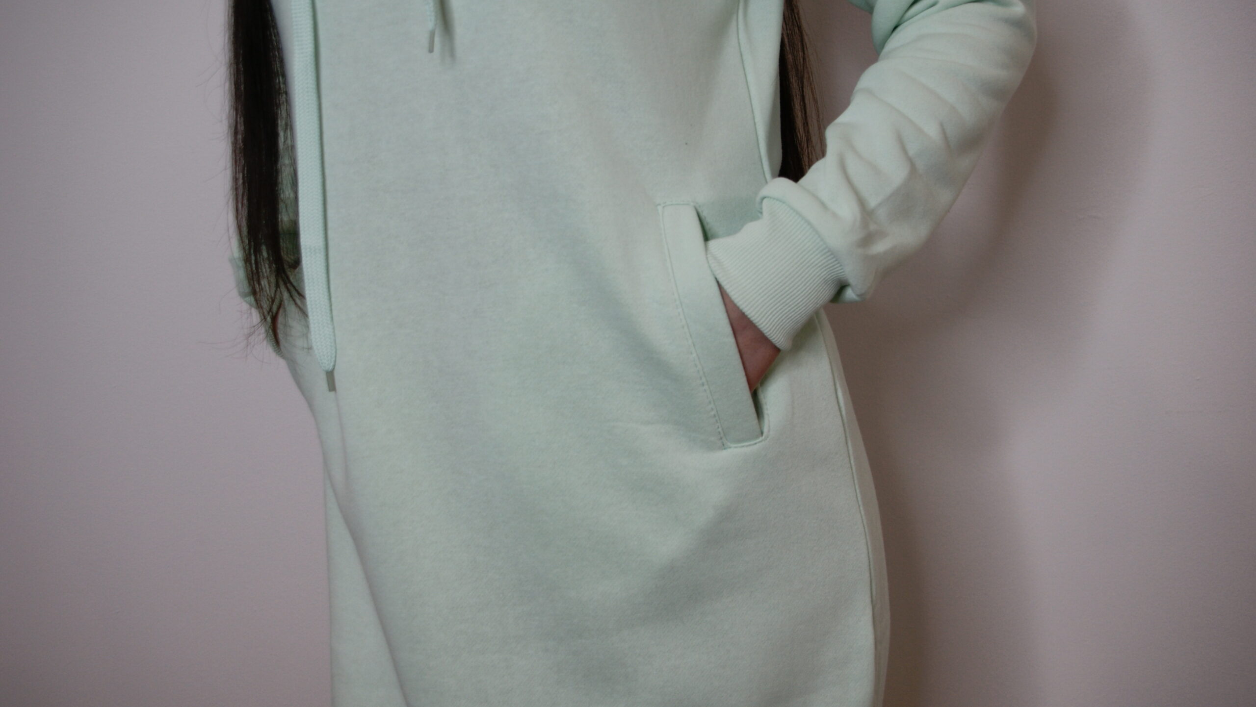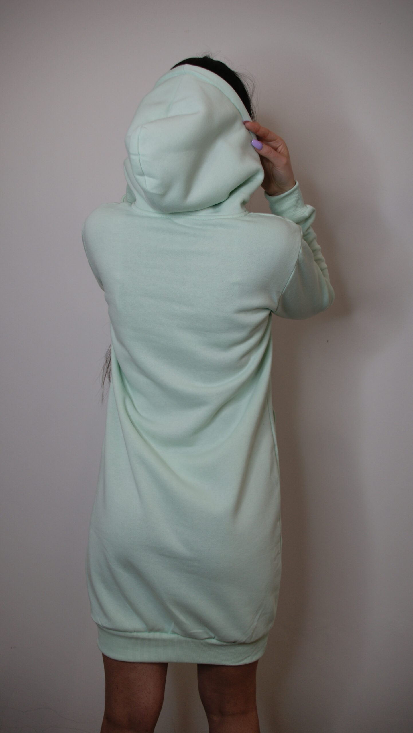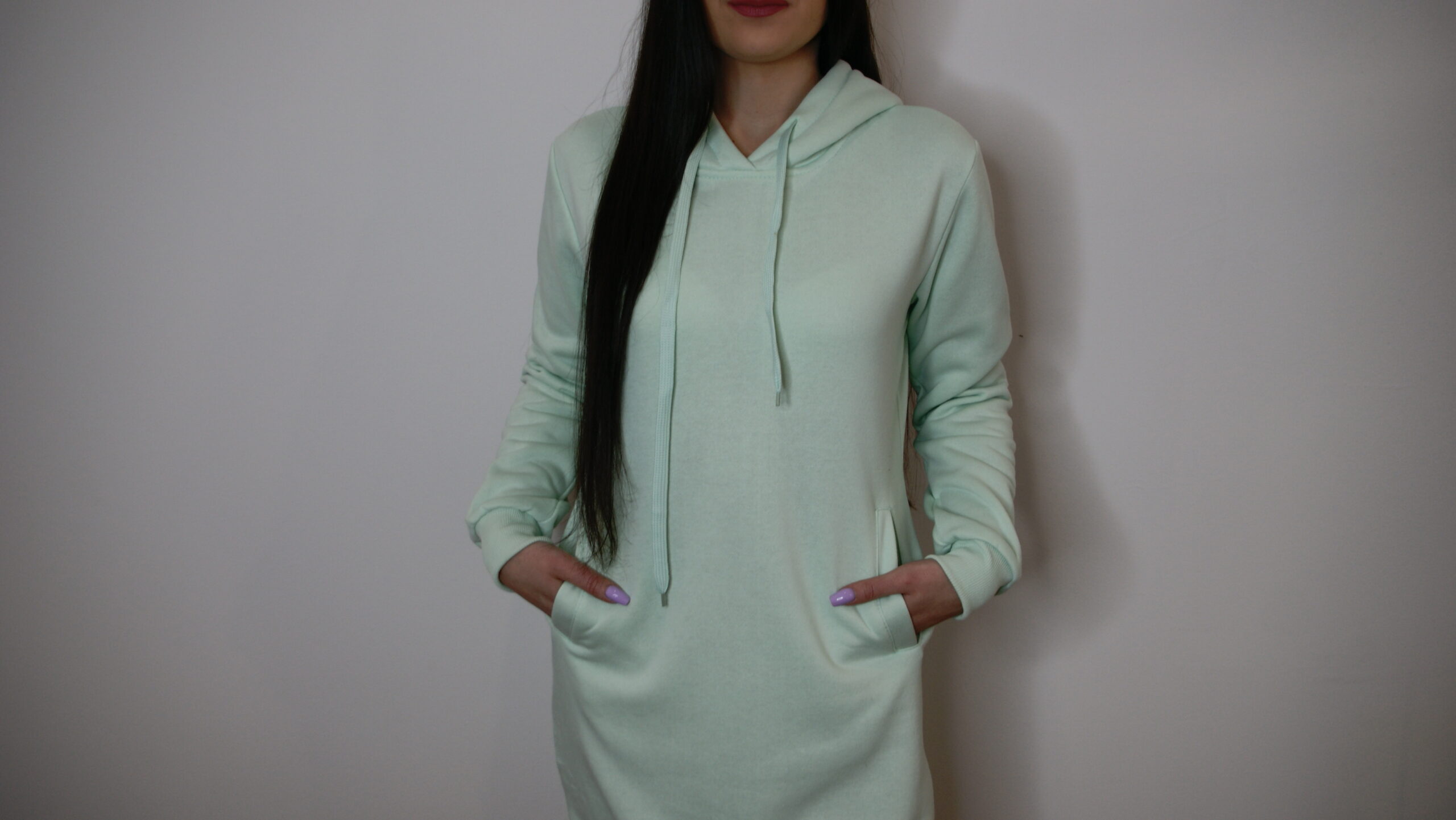 Sukienka jest lekko ocieplona, o kroju bluzy. Bardzo wygodna i komfortowa. Idealnie sprawdzi się na wiosnę, ale także na chłodniejsze letnie dni. Z przodu sukienka ma dwie kieszonki , a u spodu i przy rękawkach ściągacze. Sprawdzi się super na dni, kiedy chcemy ubrać coś szybko i wyglądać dobrze mimo gorszego samopoczucia.